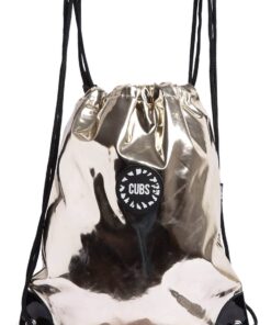 On the Go string bag by CUBS in stylish holographic leather in fashionable colors with iconic CUBS rubber logo. Internally lined with one zippered pocket and two slots for phones and keys.